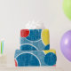 Este presente tem vários tamanhos de círculos com as cores azul, vermelha e amarela. Excelente para qualquer ocasião.
