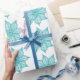 Papel De Presente Verde-claro-marinho-de-flores brancas