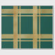 Papel De Presente Verde clássico e Dourado Tartan