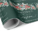 Papel de embrulho de presente de Natal moderno, com elegante verde de inverno e bagas num fundo verde escuro. O design é acentuado com o texto de estilo manuscrito de tendências com a sofisticada saudação "Saudações da Estação". Personalize este belo papel de embrulho de férias com o seu nome.