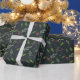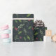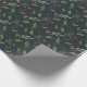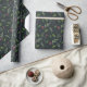 Papel de embrulho de Natal personalizado, com verde de Natal e design de morango vermelho em fundo de marinho escuro.