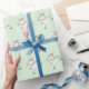 Brincadeiras de presentes de férias adoráveis desenhadas à mão e desenhadas a neve com gelo em fundo verde pastoso
