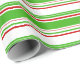 Este design de papel de embrulho apresenta um Natal e feriados com os mesmos temas de padrão verde, branco e vermelho listrado. Um papel de embrulho como este pode ser usado no empacotamento de presentes ou presentes para comemorar um aniversário, um casamento, um aniversário ou qualquer outro evento.