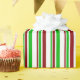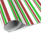 Esta design de papel de embrulho apresenta um padrão temático de Natal de listras com cores como verde, branco e vermelho. Pode ser divertido usar papel de embrulho como este ao embrulhar presentes para celebrar um aniversário, um casamento, um aniversário ou qualquer outro evento.