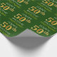 Este design de papel de embrulho apresenta uma mensagem como "FELIZ 50º ANIVERSÁRIO", com o "50º" a ter uma aparência falsa/imitação de ouro. Também apresenta um nome personalizado e um fundo de cor verde. Talvez possa ser utilizada quando se dá presentes para o quinquagésimo aniversário de alguém. [~Z0000132]