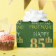 Este design de papel de embrulho apresenta uma mensagem como "FELIZ 85.º ANIVERSÁRIO", com o "85.º" a ter uma aparência falsa/imitação de ouro. Ele também apresenta um nome que pode ser personalizado e um fundo verde colorido. Talvez possa ser utilizado quando se dá presentes para o oitenta quinto aniversário de alguém. [~Z0000132]