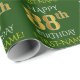 Este design de papel de embrulho apresenta uma mensagem como "FELIZ 88º ANIVERSÁRIO", com o "88º" com aparência falsa/imitação de ouro. Também apresenta um nome personalizado e um fundo de cor verde. Talvez possa ser utilizada quando se dá presentes para o oitavo aniversário de alguém. [~Z0000132]