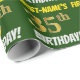 Este design de papel de empacotamento apresenta uma mensagem como "PRIMEIRO NOME É 35º ANIVERSÁRIO!", com o "35º" a ter uma aparência de cor falsa/imitação em forma de ouro, e com o nome e "ANIVERSÁRIO" numa fonte divertida e ousada. O nome pode ser personalizado e o fundo tem cor verde. Um papel de embrulho como este poderia talvez ser usado para embrulhar presentes de aniversário que são dados a alguém em comemoração de seus trinta e cinco anos de aniversário. [~Z0000208]