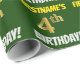 Este design de papel de empacotamento apresenta uma mensagem como "4º ANIVERSÁRIO DO PRIMEIRO NOME!", com o "4º" a ter uma aparência falsa/imitada de cor dourada, e com o nome e "ANIVERSÁRIO" numa fonte divertida e ousada. O nome pode ser personalizado e o fundo tem cor verde. Um papel de embrulho como este poderia talvez ser usado no embrulho de presentes de aniversário que são dados a alguém em comemoração do seu quarto aniversário. [~Z0000208]