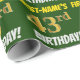 Este design de papel de empacotamento apresenta uma mensagem como "PRIMEIRO NOME DO 43º ANIVERSÁRIO!", com o "43º" a ter uma aparência falsa/imitada de cor dourada, e com o nome e "ANIVERSÁRIO" numa fonte divertida e ousada. O nome é personalizável e o fundo é verde colorido. Um papel de embrulho como este poderia talvez ser usado no embrulho de presentes de aniversário que são dados a alguém em comemoração de seus quarenta e terceiro anos. [~Z0000208]