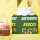 Este design de papel de embrulho apresenta uma mensagem como "56º ANIVERSÁRIO DE JESSICA!", com o "56º" a ter uma aparência falsa/imitada de cor dourada, e com o nome e "ANIVERSÁRIO" numa fonte divertida e ousada. O nome pode ser personalizado e o fundo tem cor verde. Um papel de embrulho como este poderia talvez ser usado para embrulhar presentes de aniversário que são dados a alguém em comemoração de seus cinquenta e seis anos de aniversário. [~Z0000208]