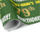 Este design de papel de embrulho apresenta uma mensagem como "FIRST-NAME'S 79th BIRTHDAY!", com o "79º" a ter uma aparência falsa/imitada de cor dourada, e com o nome e "BIRTHDAY" numa fonte divertida e ousada. O nome pode ser personalizado, e o fundo é verde colorido. Um papel de embrulho como este poderia talvez ser usado no embrulho de presentes de aniversário que são dados a alguém em comemoração de seus setenta e nono anos. [~Z0000208]