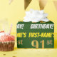 Este design de papel de embrulho apresenta uma mensagem como "PRIMEIRO NOME'S 91rua BIRTHDAY!", com a "91ruas" a ter uma aparência falsa/imitada de cor dourada, e com o nome e "BIRTHDAY" numa letra divertida e ousada. O nome pode ser personalizado, e o fundo é verde colorido. Um papel de embrulho como este poderia talvez ser usado no embrulho de presentes de aniversário que estão sendo dados a alguém em comemoração de seus 90 anos de primeiro aniversário. [~Z0000208]
