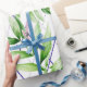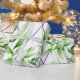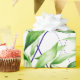 Folha da selva de aquarela embrulhada com um padrão geométrico roxo.