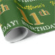 Este design de papel de embrulho apresenta uma mensagem como "FirstName’s 11 BIRTHDAY!", com o "11" a ter uma aparência de cor falsa/imitada em ouro. O nome pode ser personalizado, e o fundo é verde colorido. Talvez possa ser utilizada quando se dá presentes para o décimo primeiro aniversário de alguém. [~Z0000179]