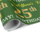 Este design de papel de embrulho apresenta uma mensagem como "First-Name’s 25 BIRTHDAY!", com o "25" a ter uma aparência falsa/de cor dourada. O nome pode ser personalizado, e o fundo é verde colorido. Talvez possa ser utilizada quando se dá presentes para o vigésimo quinto aniversário de alguém. [~Z0000179]