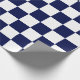 Um papel de envolvimento projetou com um teste padrão checkered do azul marinho e o branco no tamanho da extra grande. Você pode mudar os azuis marinhos para uma cor diferente.