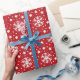 PAPEL DE PRESENTE VERMELHO COM NEVES DE NATAL BRANCO