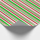 Esta design de Natal apresenta um padrão de listras com cores como verde, branco e vermelho. Pode ser divertido usar papel de embrulho como este ao preparar presentes para comemorar um aniversário, um casamento, um aniversário ou qualquer outro evento.