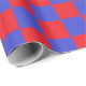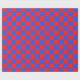 Arte digital abstrato de quadrados vermelhos e azuis em uma formação controlada.
