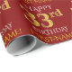 Este design de papel de embrulho apresenta uma mensagem como "FELIZ 33º ANIVERSÁRIO", com o "33º" a ter uma aparência falsa/imitação de ouro. Ele também apresenta um nome que pode ser personalizado, e um fundo de cor vermelha. Talvez possa ser utilizado quando se dá presentes para o trigésimo terceiro aniversário de alguém. [~Z0000131]