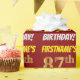 Este design de papel de empacotamento apresenta uma mensagem como "FIRSTNAME'S 87th BIRTHDAY!", com o "87º" a ter uma aparência de cor falsa/imitada em forma de ouro, e com o nome e "BIRTHDAY" numa fonte divertida e ousada. O nome é personalizável e o fundo é vermelho colorido. Um papel de embrulho como este poderia talvez ser usado no embrulho de presentes de aniversário que são dados a alguém em comemoração do seu oitenta e sétimo aniversário. [~Z0000204]