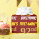Este design de papel de empacotamento apresenta uma mensagem como "PRIMEIRO NOME É 92º ANIVERSÁRIO!", com o "92º" a ter uma aparência de cor falsa/imitação em forma de ouro, e com o nome e "ANIVERSÁRIO" numa fonte divertida e ousada. O nome pode ser personalizado, e o fundo tem cor vermelha. Um papel de embrulho como este poderia talvez ser usado no embrulho de presentes de aniversário que estão sendo dados a alguém em comemoração do seu 90º aniversário. [~Z0000204]