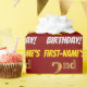 Este design de papel de embrulho apresenta uma mensagem como "segundo aniversário DO PRIMEIRO NOME!", com o "segundo" a ter uma aparência falsa/imitada de cor dourada, e com o nome e "BIRTHDAY" numa fonte divertida e ousada. O nome pode ser personalizado, e o fundo tem cor vermelha. Um papel de embrulho como este poderia talvez ser usado no embrulho de presentes de aniversário que são dados a alguém em comemoração do seu segundo aniversário. [~Z0000204]