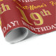 Este design de papel de embrulho apresenta uma mensagem como "First-Name's 19th BIRTHDAY!", com o "19º" a ter uma aparência falsa/de cor dourada. O nome pode ser personalizado, e o fundo tem cor vermelha. Talvez possa ser utilizada quando se dá presentes para o décimo nono aniversário de alguém. [~Z0000178]