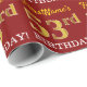 Este design de papel de embrulho apresenta uma mensagem como "FirstName’s 53rd BIRTHDAY!", com o "53º" a ter uma aparência de cor falsa/imitada em ouro. O nome pode ser personalizado e o plano de fundo é vermelho. Talvez possa ser utilizado quando se dá presentes para o cinquenta e terceiro aniversário de alguém. [~Z0000178]