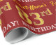 Este design de papel de embrulho apresenta uma mensagem como "First-Name’s 83rd BIRTHDAY!", com o "83º" a ter uma aparência de cor falsa/imitada em ouro. O nome pode ser personalizado, e o fundo tem cor vermelha. Talvez possa ser utilizado quando se dá presentes para o oitenta e terceiro aniversário de alguém. [~Z0000178]