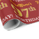 Este design de papel de embrulho apresenta uma mensagem como "FirstName’s 97th BIRTHDAY!", com o "97º" a ter uma aparência de cor falsa/imitada em ouro. O nome pode ser personalizado, e o fundo tem cor vermelha. Talvez possa ser utilizado quando se dá presentes para o nonagésimo sétimo aniversário de alguém. [~Z0000178]