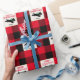 Papel de embrulho de Natal na moda com um cão escocês festivo a bater! Este design bonitinho também apresenta um padrão tradicional de Xadrez de Buffalo em vermelho e preto. Todo o texto pode ser personalizado, para que você possa fazer o seu pacote de presente realmente único.