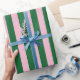 Papel De Presente Vertical Stripe Pattern in Pink and Green