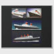 Papel de embrulho que inclui os três últimos navios que efetuam a travessia transatlântica de velocidade em SS Normandie; RMS Queen Mary; SS Estados Unidos
