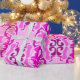 Roll of decorative wrapping paper featuring a vibrant pink and purple abstract pattern, with symmetrical floral and geometric shapes on a light background.