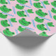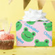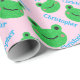 Papel de embrulhamento de vida doce, cor-de-rosa, padrão verde sorridente do Sapo. Este papel de embrulho é fofo e personalizável com o primeiro nome de criança.