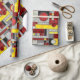 Este papel de embrulho de presente tem um padrão de deco de blocos quadrados em vidro digital manchado. Um design geométrico colorido em cores vermelho, amarelo e preto. Um belo papel de embrulho para cobrir seus presentes. Você pode fazer o padrão neste papel de embalagem maior ou menor.