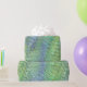 Uma tomada moderna do século médio: sobreposição de formas atômicas sobre uma cruz digital em verdes brilhantes e novos azuis.