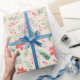 Padrão de flores verdes e vermelhas de Natal em um fundo creme para embalagem de presente sazonal. Torne seus presentes ainda mais bonitos este ano.
