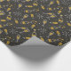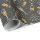 Papel de embrulho bem desenhado, com um padrão festivo de garrafas de vinho, óculos, fogos de artifício, sagrados e bagas.