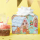Uma vila divertida e colorida de casas de pão de gengibre cobertas de neve (fundo aqua)