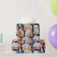 Uma vila divertida e colorida de casas de pão de gengibre cobertas de neve (fundo azul)