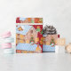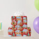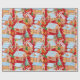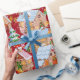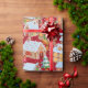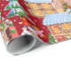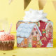 Uma vila divertida e colorida de casas de pão de gengibre cobertas de neve (fundo vermelho)