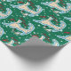 Aqui está um papel de embrulho para qualquer um que ama Cabo Cod. Ele apresenta um mapa básico e colorido de areia do Cabo, rodeado por ilustrações de um veleiro, farol, concha e lagosta. O texto "Cape Cod" aparece em uma fonte de script em vermelho escuro. Um fundo verde com flocos de neve adiciona um toque de inverno e feriados ao design.