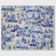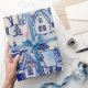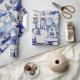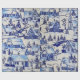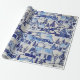 Papel muito bonito em um padrão retrô, china azul. Uma vila rural coberta de neve
