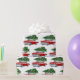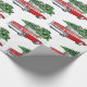 Vintage Chevy com Árvore de Natal em papel de embrulho. Fundo branco. Carro Vermelho e Branco. Embalagem de presente de feriado.