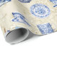 Elegant vintage style blue white teapots, tea cups and plates on antique faded damask background make a lovely and elegant all occasion wrapping paper.