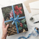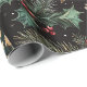 Spread some holiday cheer with this elegant Vintage Christmas Lanterns wrapping paper. A black background with a variation of pinecones, poinsettias, berries, gifts, stars, and vintage lanterns.