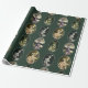 Este papel de embrulho é ilustrado com personagens vitorianas de animais dispostos em ovais sobre fundo verde.